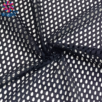 Tecido de Malha Stretch de Nylon 82% e Spandex 18% 40D N com Furos Redondos Grandes, Preto, Respirável para Roupas de Esporte e Lazer